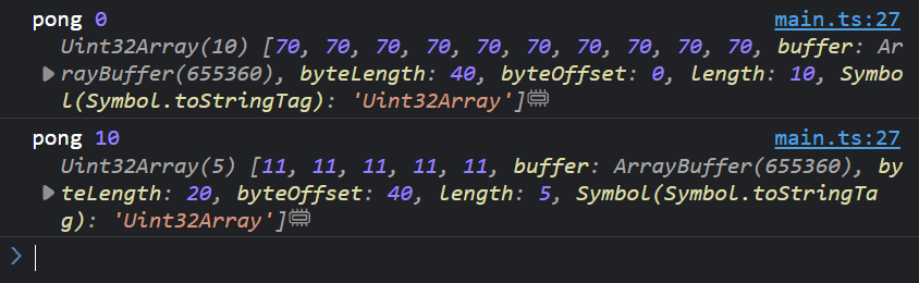 console.log('pong', memory.u32.subarray(ptr >> 2, (ptr >> 2) + size))